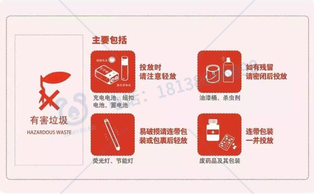 有害垃圾:是指对人体健康或者自然环境造成直接或者潜在危害的零星废弃物,单位集中产生的除外。主要包括废电池、废灯管、废药品、废油漆桶等。
